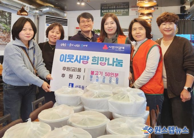 원스텝뉴스 이병희 기자 | 수원시 권선구 서둔동에 소재한 대박고깃집 탑동점에서는 26일, 관내 독거 어르신을 위해 불고기 50인분을 “따뜻한 한끼”나눔 후원했다.