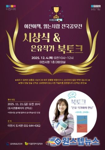 원스텝뉴스 천규영 기자 | 이천시는 문화체육관광부가 주최하고 한국출판문화산업진흥원 주관하는 2025년 독서기반 지역활성화 공모사업에 선정되어 추진 중인 ‘이천이책’ 사업의 하나로 ‘읽는 사람 전국 공모전’을 10월 1일부터 11월 2일까지 온라인으로 진행했다.