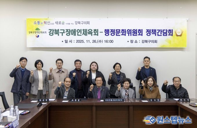 원스텝뉴스 이병희 기자 | 강북구의회 행정문화위원회(위원장 곽인혜)는 지난 11월 26일 의회 3층 의원회의실에서 강북구장애인체육회와 정책 간담회를 진행했다.