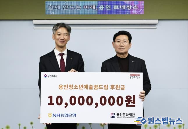 원스텝뉴스 이병희 기자 | 용인문화재단은 지난 27일 용인시청에서 NH농협은행 용인시지부로부터 장학사업 지원을 위한 기부금 1,000만 원을 전달받았다고 밝혔다.