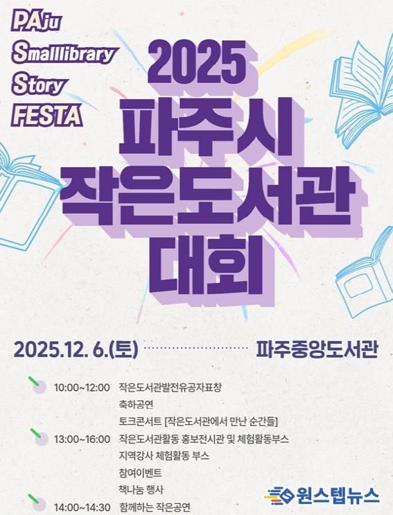 원스텝뉴스 천규영 기자 | 파주시 중앙도서관은 오는 6일, 한 해 동안 작은도서관의 다양한 활동을 시민들과 함께 공유하고 운영자들을 격려하기 위한 녩파주시 작은도서관대회 패스 페스타(PASS FESTA)’를 개최한다고 밝혔다.