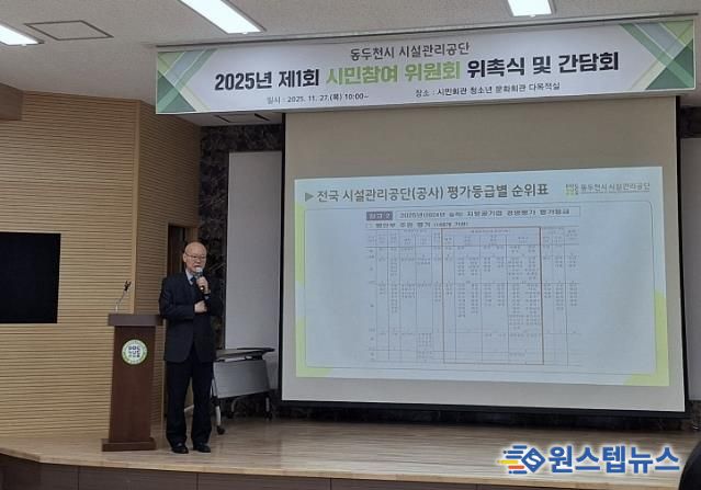 원스텝뉴스 이병희 기자 | 동두천시 시설관리공단은 지난 27일 상패동 시민회관 별관 청소년문화회관 다목적실에서 ‘제1회 시민참여위원회’ 개회식을 열고, 공단 주요 정책과 사업에 시민이 직접 참여할 수 있는 제도적 기반을 마련했다고 밝혔다.