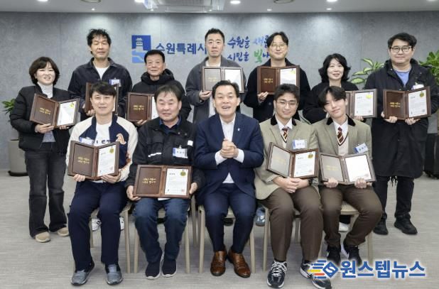 이재준 수원시장은 어린이를 구조한 시민들을 12월 1일 집무실로 초대해 감사인사를 하고, ‘모범시민’ 표창을 수여했다.