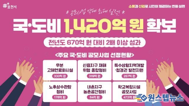 원스텝뉴스 이병희 기자 | 포천시는 2일 2025년 한 해 동안 중앙부처와 경기도 등 공모사업에 선정되며 총 1,420억 원의 국·도비를 확보했다고 밝혔다.