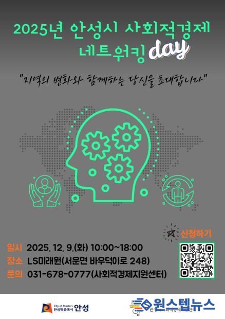 원스텝뉴스 이병희 기자 | 안성시는 오는 9일 사회적경제기업의 교류와 협업을 위한 ‘2025년 안성시 사회적경제 네트워킹데이’를 LS미래원에서 개최한다.