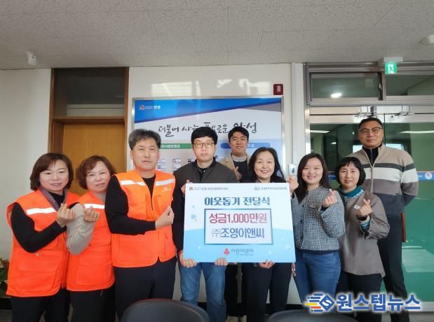안성시 양성면 동항리에 위치한 ㈜조영이앤씨는 경량알루미늄 복합패널 제조업체로, 2019년부터 매년 꾸준히 성금을 기탁했으며, 특히 지난해에 이어 올해에도 1,000만 원을 기탁하여 지역 나눔문화 확산에 앞장서고 있다.
