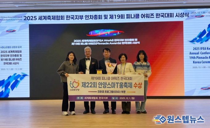 원스텝뉴스 이병희 기자 | 안양시는 제22회 안양스마T움축제가 ‘제19회 피나클 어워즈’ 한국대회에서 친환경 프로그램 부문 동상을 받았다고 2일 밝혔다.
