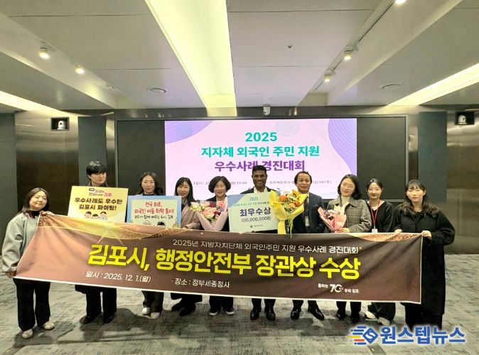 원스텝뉴스 이병희 기자 | 김포시가 12월 1일 정부세종청사에서 행정안전부가 주관한 '2025 외국인주민 지원 우수사례 경진대회'에서 최우수상을 수상했다. 이로써 김포시는 특별교부세 1억 원을 지원받게 됐다.