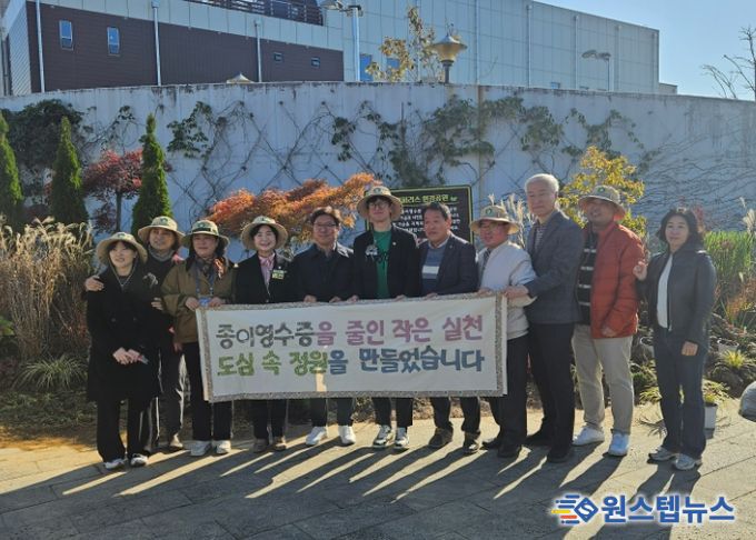 원스텝뉴스 이병희 기자 | 광주광역시 서구의회 임성화의원(광천동, 유덕동, 치평동, 상무1동, 동천동), 서구청(공원녹지과), (사)광주소비자공익네트워크, BC 카드사 등 민‧관협력을 통해 상무시민공원 일대에 전국 최초의 '페이퍼리스(Paperless) 환경정원' 이 조성됐다.