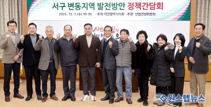원스텝뉴스 이병희 기자 | 대전시의회 산업건설위원회 김영삼 의원(국민의힘, 서구2)은 3일 대전시의회 소통실에서 ‘변동지역 발전방안 정책간담회’를 열고 주민들과 주요 현안을 논의했다.