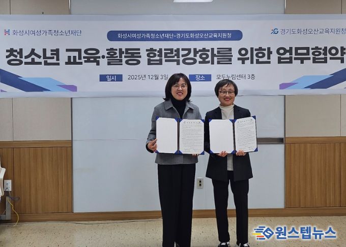 원스텝뉴스 이병희 기자 | 경기도화성오산교육지원청은 2025년 12월 3일, 모두누림센터에서 화성시여성가족청소년재단과 ‘지역 연계 교육·청소년 활동 강화를 위한 업무협약식’을 체결하고, 화성다가치 공유학교 운영을 중심으로 지역 자원을 활용한 학교 밖 배움 지원 체계를 본격 강화해 나가기로 했다.