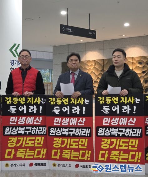 원스텝뉴스 이병희 기자 | 경기도의회 교육기획위원회 김호겸 의원(국민의힘, 수원5)은 2025년 12월 3일 백현종 경기도의회 국민의힘 대표의원을 중심으로 경기도의회 교육기획위원회 위원 및 교육행정위원회 위원들과 함께 김동연 지사가 팽개치고 있는 경기도 민생예산 복구를 촉구했다.