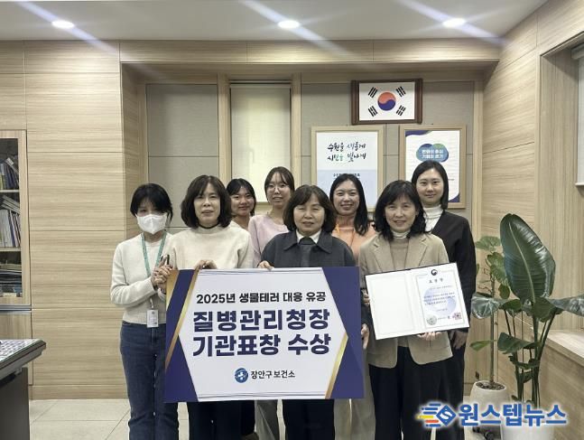 원스텝뉴스 이병희 기자 | 수원시 장안구보건소가 질병관리청이 주관한 ‘2025년 생물테러 대응 유공자 포상’에서 질병관리청장상을 받았다.