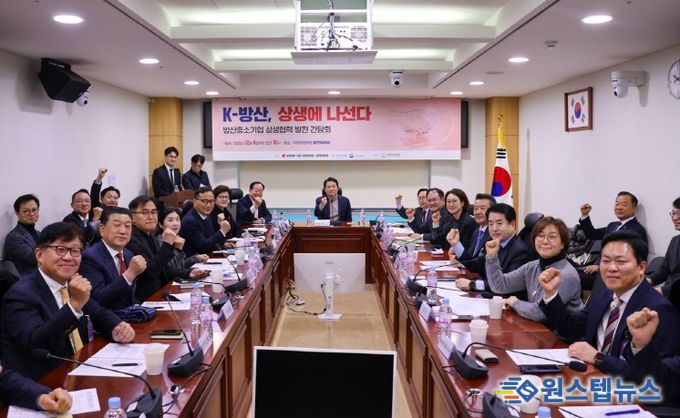 원스텝뉴스 이병희 기자 | 성일종 국회 국방위원장을 비롯한 국민의힘 국방위원(한기호 강대식 강선영 유용원 임종득 의원) 일동과 정책위원회(김도읍 정책위의장)는 4일 국회 의원회관 제7간담회의실에서 ‘방산 중소기업 상생협력 발전 간담회’를 열고 K-방산 대‧중소기업 간 상생을 위한 논의에 본격적인 시동을 걸었다.