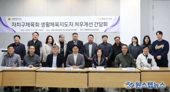 원스텝뉴스 이병희 기자 | 서울특별시의회 문화체육관광위원회 이종배 위원장 직무대리(국민의힘, 비례대표)를 비롯한 위원들은 지난 12월2일(화) 자치구체육회 관계자들과 간담회를 열고 생활체육지도자 처우개선과 호봉제 도입을 위한 의견을 수렴했다.