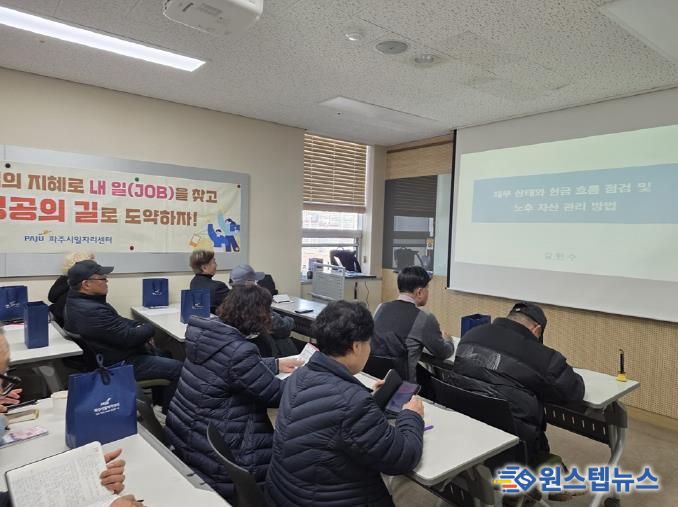 이이구 민생경제과장은 “중장년층에게 재무 역량 강화는 재취업뿐 아니라 안정적인 노후 준비를 위해 반드시 필요한 과정”이라며 “앞으로도 생애 단계별로 필요한 지원을 제공해 시민들의 경제적 자립을 돕겠다”라고 말했다.