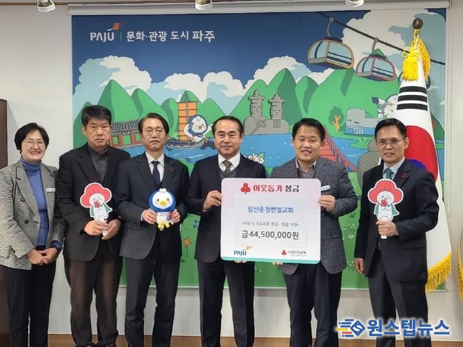 원스텝뉴스 이병희 기자 | 파주시는 4일 일산운정벧엘교회로부터 관내 저소득층 및 사회복지시설을 위한 이웃 돕기 후원금(품) 총 4,450만 원 상당(성금 2,400만 원과 후원물품 2,050만 원 상당)을 전달받았다고 밝혔다.