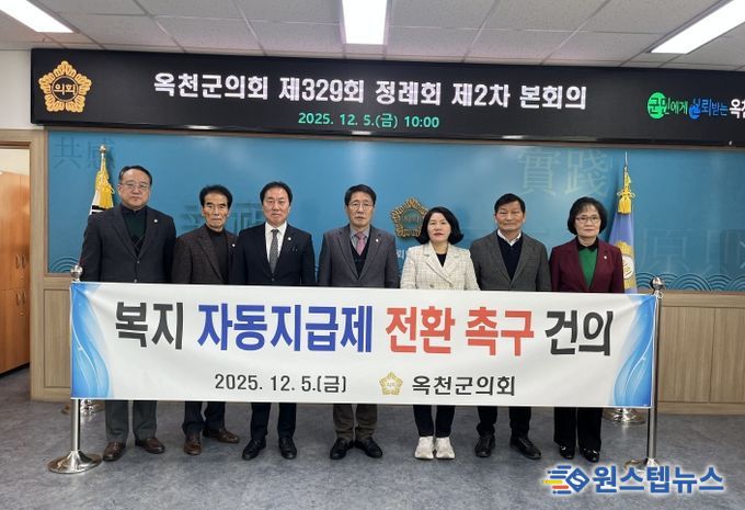 원스텝뉴스 이병희 기자 | 충북 옥천군의회(의장 추복성)는 지난 5일 열린 제329회 제2차 정례회 제2차 본회의에서 ‘복지 사각지대 해소를 위해 복지 자동지급제 전환 촉구 건의안’을 만장일치로 채택했다.