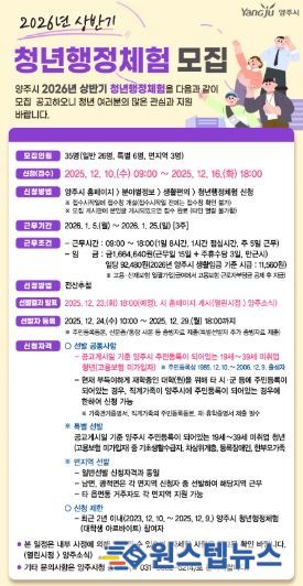 원스텝뉴스 이병희 기자 | 양주시가 ‘2026년 상반기 청년행정체험’에 참여할 19세 ~ 39세 청년 35명을 오는 16일까지 모집한다.