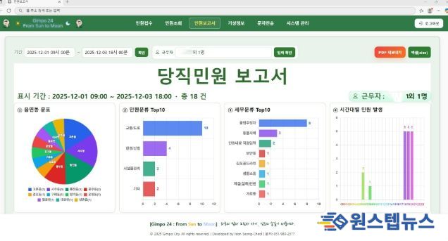 원스텝뉴스 이병희 기자 | 김포시가 야간·공휴일 민원 대응 업무에 웹 기반 자동화 시스템을 도입하며 AI 기반 행정혁신에 속도를 내고 있다. 김포시는 당직민원처리시스템 ‘Gimpo 24 : From Sun To Moon’을 외주 없이 전면 2개월간 자체 개발하여 지난 1일 부터 정식 운영에 들어갔다고 밝혔다.