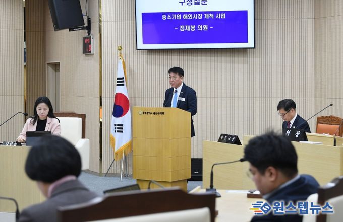 원스텝뉴스 이병희 기자 | 정재봉 광산구의원(더불어민주당, 송정1·2동·도산동·어룡동·동곡동·평동·삼도동·본량동)이 5일 열린 제301회 광산구의회 정례회 제2차 본회의에서 구정질문을 통해 중소기업 해외시장 개척사업과 광주송정역 광장 조성사업 추진 과정에서 행정의 미비함을 꼬집으며 구청장의 책임 있는 답변을 요구했다.