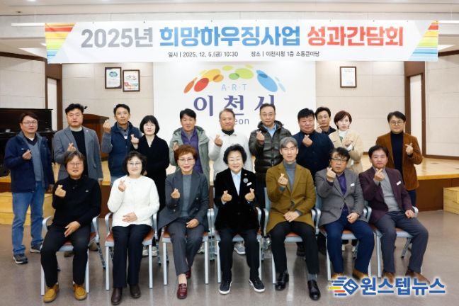 원스텝뉴스 이병희 기자 | 이천시는 12월 5일 2025년 희망하우징 사업 성과 간담회를 개최했다. 간담회에서는 시청 관계자와 희망하우징 재능기부자 등이 한자리에 모여 한 해 사업 성과를 돌아보고, 앞으로의 사업 추진 방향과 개선점 등을 논의했다.