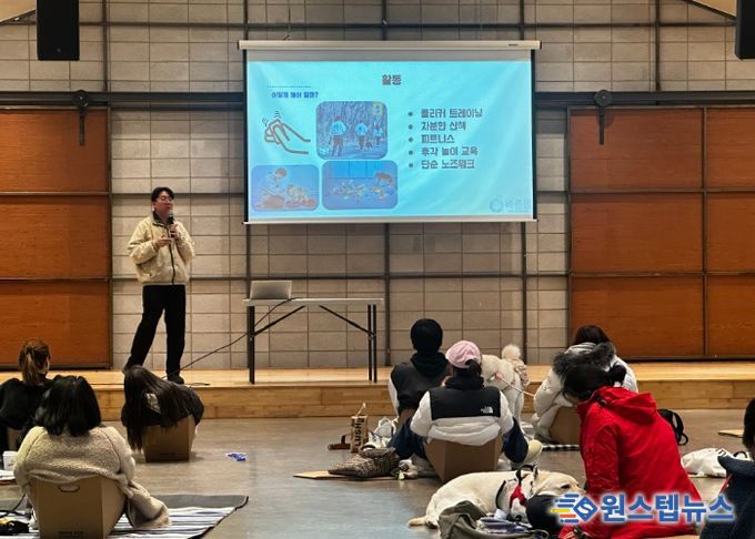 ‘댕댕 힐링클래스’는 반려견과 보호자의 정서적 안정과 유대감 향상을 도모하기 위해 마련된 체험형 교육으로, 사전 모집을 통해 선발된 18팀의 반려가족이 참여했다.