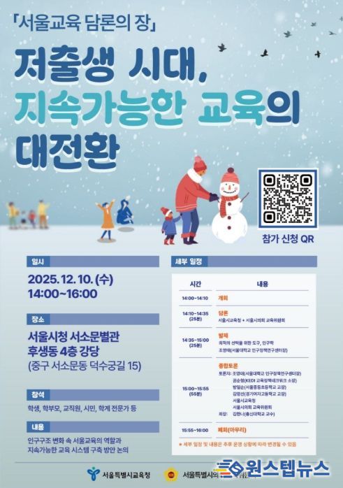 이번 행사는 저출생·학령인구 감소로 인한 교육환경 변화에 주도적으로 대응하기 위해 서울시의회와 서울시교육청이 함께 마련한 공론의 장으로, 급격한 인구구조 변화 속에서 교육정책의 지속가능성을 확보하기 위한 의회와 교육청 간 정책 협력과 제도 개선 논의를 본격화하는 출발점이 될 전망이다.