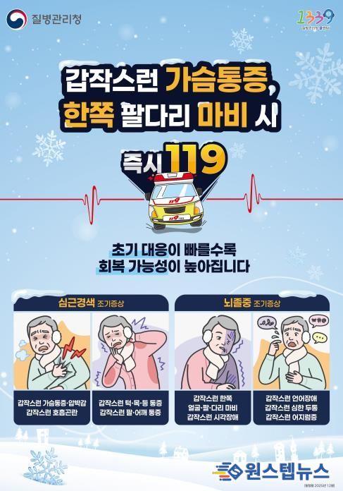 원스텝뉴스 이병희 기자 | 평택시 송탄보건소는 아침저녁 쌀쌀한 날씨로 인해 기온이 낮아지는 겨울철, 심근경색과 협심증 같은 급성 심장질환과 뇌졸중에 대한 세심한 주의를 당부했다.
