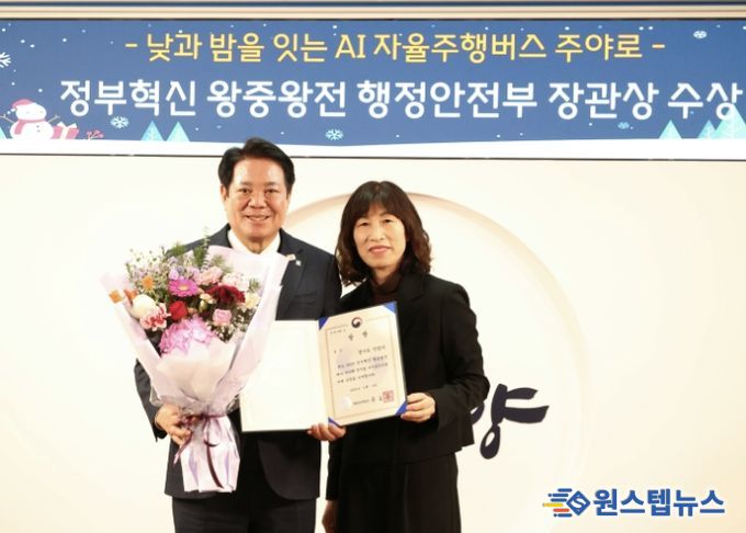 원스텝뉴스 이병희 기자 | 안양시가 행정안전부 주관 ‘2025년 정부혁신 왕중왕전’ 민원서비스 혁신 분야에서 ‘낮과 밤을 잇는 인공지능 자율주행버스 주야로’ 혁신사례로 행정안전부장관상을 수상했다.