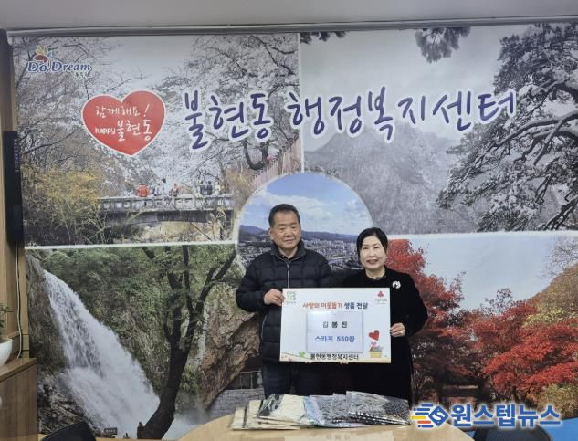 원스텝뉴스 이병희 기자 | 초이스 김봉진 대표는 지난 10일 불현동 행정복지센터를 방문해 관내 취약계층의 따뜻한 연말을 위해 스카프 550장을 기부했다.