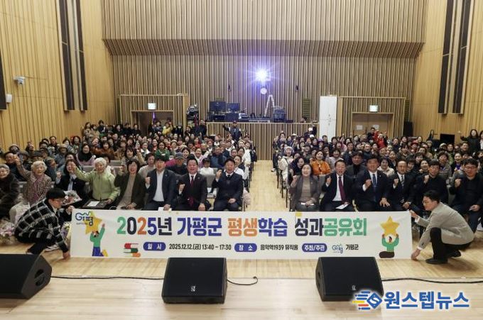 원스텝뉴스 천규영 기자 | 가평군은 지난 12일 음악역1939에서 ‘2025년 가평군 평생학습 성과공유회’를 열고 올 한 해 평생학습 성과를 공유하는 자리를 마련했다.