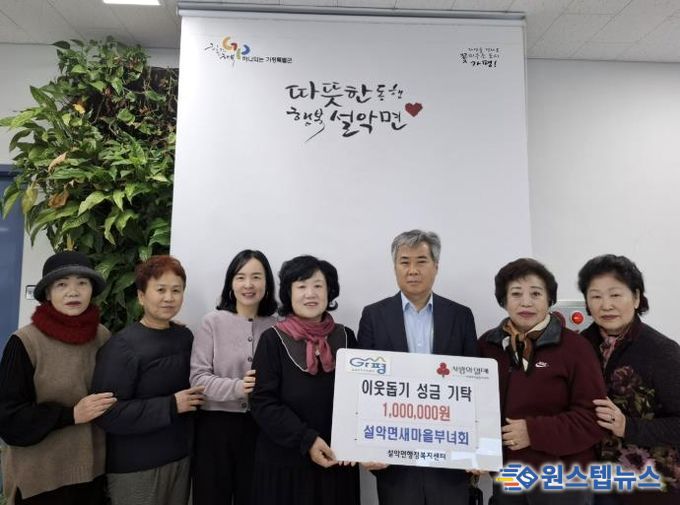 원스텝뉴스 이병희 기자 | 가평군 설악면 새마을부녀회 김정희 회장과 임원진은 12일 설악면행정복지센터를 방문해 이웃돕기 성금 100만원을 기탁했다.