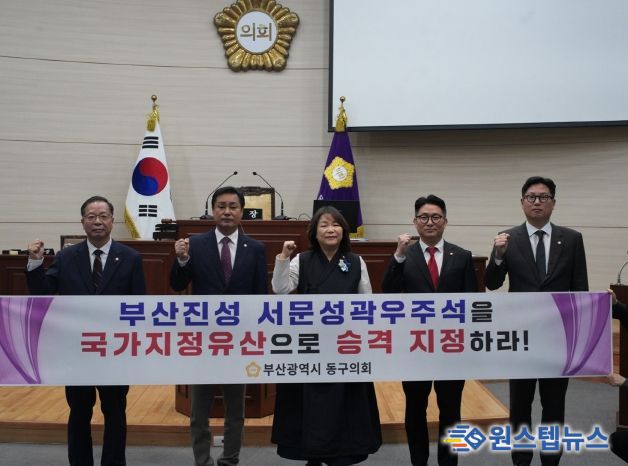 부산광역시 동구의회는 “부산진성 서문성곽우주석은 부산의 역사성과 정체성, 조선 후기 관방 인식을 여덟 글자로 구체화한 상징적 유산”이라며 “국가 차원의 정당한 평가와 신속한 지정 절차가 이뤄질 수 있도록 관계기관의 적극적인 검토를 요청한다”고 밝혔다.