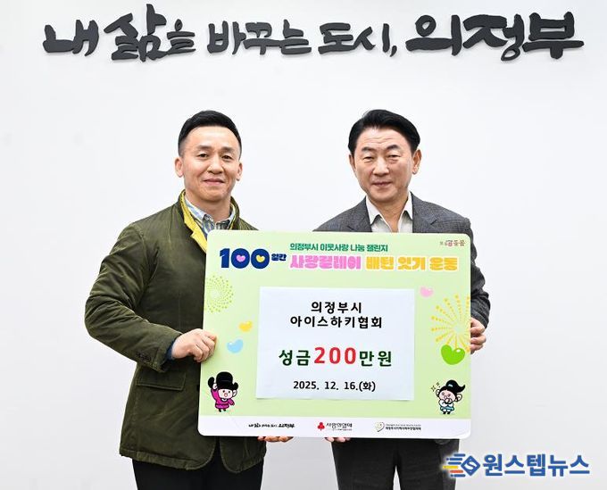 원스텝뉴스 이병희 기자 | 의정부시는 12월 16일 의정부시아이스하키협회가 ‘100일간 사랑릴레이 배턴 잇기’에 동참해 관내 장애인을 위한 성금 200만 원을 기부했다고 밝혔다.