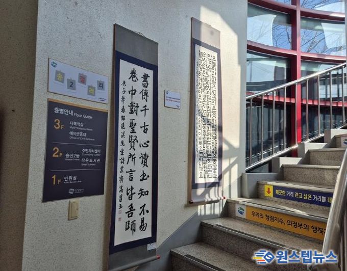 원스텝뉴스 이병희 기자 | 의정부시 송산2동주민센터는 올해 주민센터 1~3층 계단 옆 벽면을 활용해 ‘송2갤러리’를 운영했다.