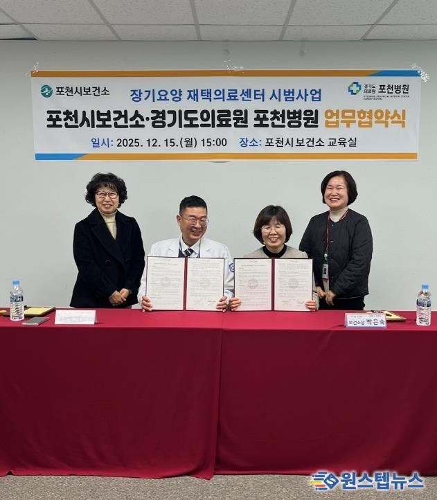 이번 협약은 시범사업 운영 기간이 2026년까지 연장됨에 따라 기존 협력 체계를 유지하고, 사업의 안정적인 운영을 도모하기 위해 체결했다. 포천시 보건소는 지역사회 자원 연계 및 행정 지원을 담당하고, 경기도의료원 포천병원은 장기요양 수급자를 대상으로 방문진료 등 의료 서비스를 지속적으로 제공한다.