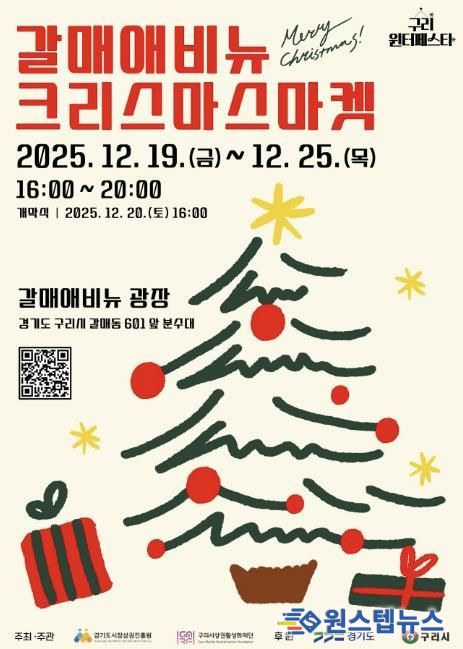 원스텝뉴스 천규영 기자 | 구리시상권활성화재단은 오는 12월 19일부터 25일까지 갈매 애비뉴 광장에서 ‘2025 구리윈터페스타–갈매애비뉴 크리스마스 마켓’을 개최한다고 밝혔다.