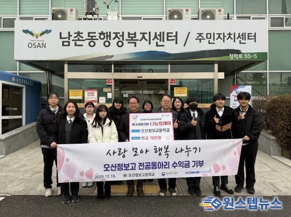 원스텝뉴스 이병희 기자 | 오산시 남촌동행정복지센터는 지난 16일 오산정보고등학교 전공동아리 학생들과 주훈지 교장, 담당교사 등이 참석한 가운데 관내 저소득층 지원을 위한 바자회 판매 수익금 70만 원을 기탁받았다고 밝혔다.