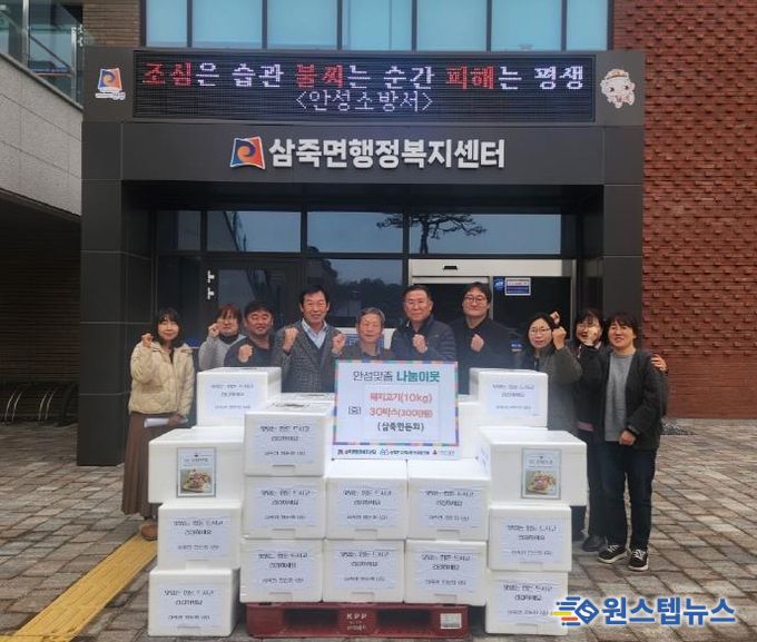 엄기헌 삼죽면장은 “노인복지에 관심을 가지고 이웃사랑을 실천해주시는 삼죽면한돈회 회장님과 회원분들께 깊이 감사드린다”며, “이런 꾸준한 나눔이 어르신들에게 큰 힘이 되고 있으며, 삼죽면도 민·관이 함께하는 따뜻한 복지 공동체를 만들기 위해 더욱 촘촘한 지원 체계를 마련하겠다”고 전했다.