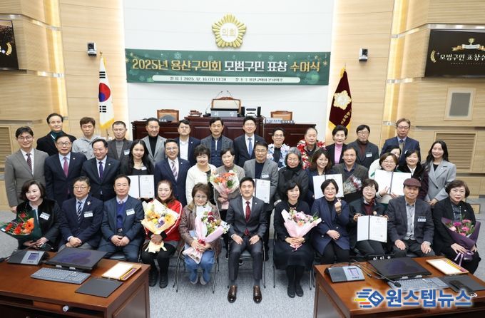 원스텝뉴스 이병희 기자 | 용산구의회는 12월 16일 본회의장에서 지역사회 발전과 주민 화합에 기여한 구민을 선정해 ‘2025년도 용산구의회 모범구민 표창 수여식’을 개최했다.