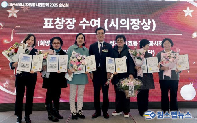 원스텝뉴스 이병희 기자 | 대전시의회 조원휘 의장은 17일 라도무스아트센터(유성구 원신흥동)에서 개최된 2025년 市 자원봉사연합회 송년회에 참석해 지역 곳곳을 지켜온 자원봉사자들에게 깊은 감사의 마음을 전했다.