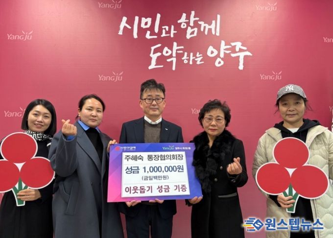 신동주 옥정2동장은 “연말을 맞아 지역사회를 위한 나눔을 실천해 주신 주혜숙 협의회장님께 감사드린다”며 “이번 기부는 지역 내 이웃들이 서로를 돌아보는 계기가 될 것이며, 따뜻한 공동체 분위기 조성에 큰 힘이 될 것으로 기대한다”고 전했다.