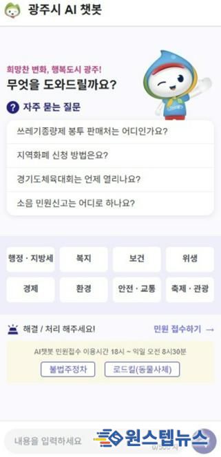 원스텝뉴스 이병희 기자 | 광주시는 생성형 인공지능(AI) 기술을 활용한 ‘광주시 AI 행정서비스 구축’ 사업을 완료하고 AI 민원 채팅 로봇과 콜봇을 22일부터 시범 운영한다고 19일 밝혔다.