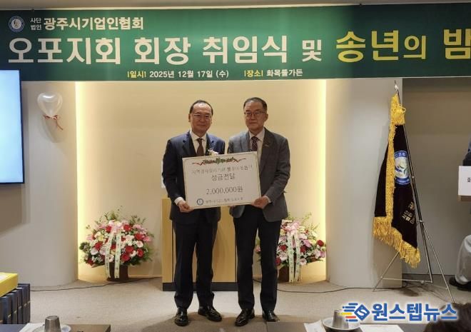 원스텝뉴스 이병희 기자 | (사)광주시기업인협회 오포지회는 지난 17일 송년회를 개최하고 지역 내 어려운 이웃을 돕기 위해 농협 상품권 200만 원을 광주시 오포1동 행정복지센터에 기탁했다.
