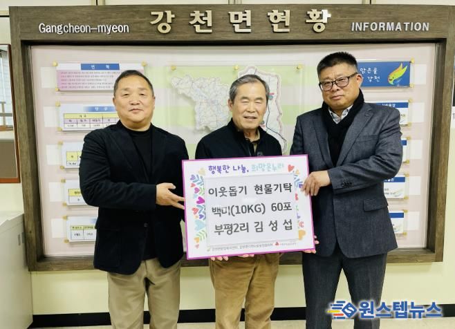 원스텝뉴스 이병희 기자 | 강천면 부평2리에 거주하는 김성섭 씨가 지난 18일 강천면 행정복지센터를 방문하여 관내 어려운 이웃에게 전달해 달라며 백미(10kg) 60포를 강천면에 전달하여 지역사회의 귀감이 되고 있다.