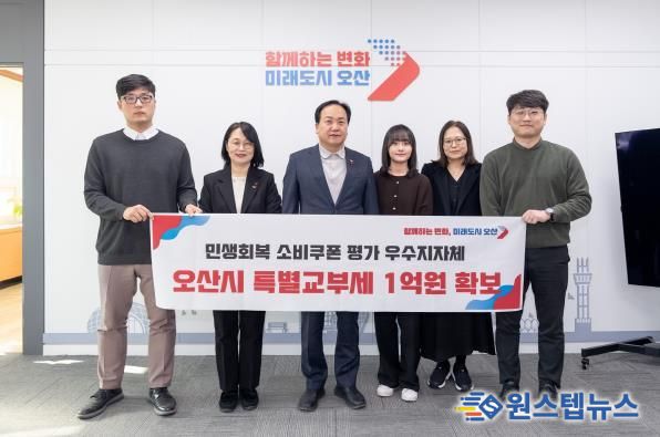 원스텝뉴스 이병희 기자 | 오산시가 행정안전부가 주관한 민생회복 소비쿠폰 집행 평가에서 ‘우수 지자체’로 선정돼 특별교부세 1억 원을 확보했다.