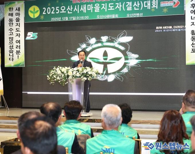원스텝뉴스 천규영 기자 | 오산시새마을회는 지난 17일 오산컨벤션웨딩홀에서 이권재 오산시장과 이상복 오산시의회 의장을 비롯한 내빈, 새마을 가족 200여 명이 참석한 가운데 ‘2025 새마을지도자 결산대회’를 개최했다고 밝혔다.
