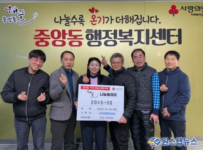 백경희 중앙동장은 “올해도 변함없이 따뜻한 나눔을 실천해 주신 오산오일장상인회에 깊이 감사드린다”며 “기탁해주신 성금은 도움이 필요한 이웃들에게 맞춤형 복지로 연계해 촘촘한 인적·물적 안전망을 구축하는 데 활용하겠다”고 밝혔다.