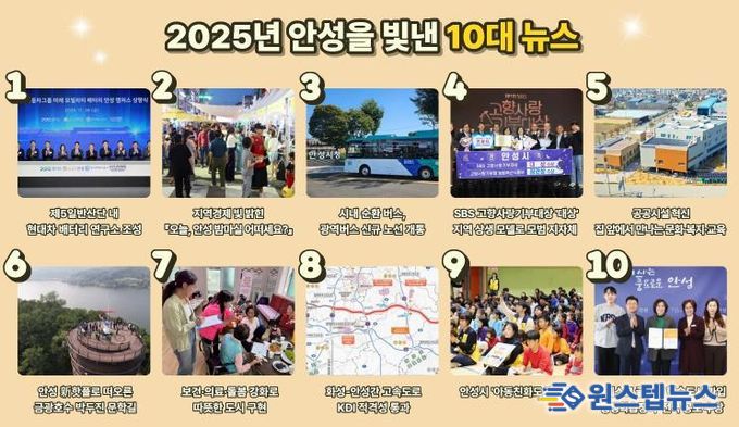 원스텝뉴스 이병희 기자 | 안성시는 올 한 해 추진한 주요 사업과 성과를 토대로 시민 대상 설문조사를 거쳐 2025년을 빛낸 10대 뉴스를 선정했다고 밝혔다.